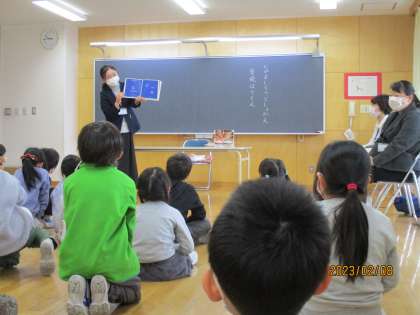 藤っ子1年生のために、富山市立図書館から司書の方々がいらっしゃいました。