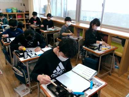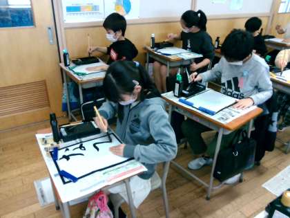 「なめらかな感じで書く」「とめ、はね、はらいに気をつける」など、送筆・終筆等の筆使いを意識して、真剣に書きました。