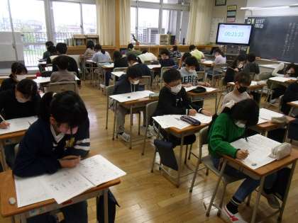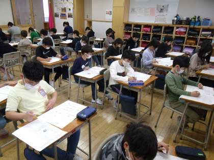 国語と理科の学力調査を行いました。子供たちは時間いっぱいまで、一生懸命テストに取り組みました。