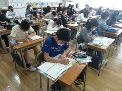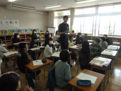6年生になって初の外国語の授業がありました。誕生日や出身国の言い方を学習し発音したり、自分の名前を書く練習をしたりして、英語への理解を深めていました。