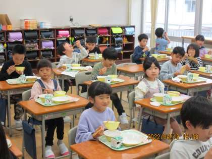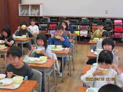 2年生になって約2週間。すばやく準備を行い、楽しく給食を食べています!
