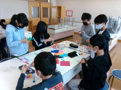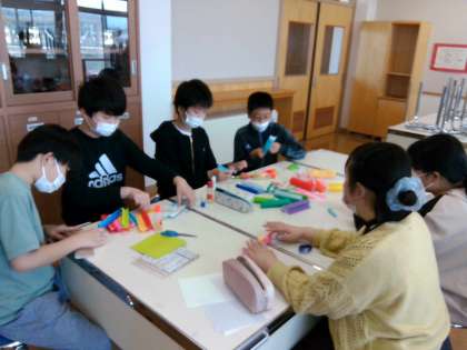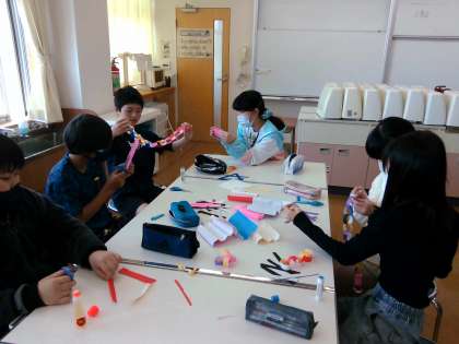 5月1日に行われる、入学お祝い集会に向けて、準備を進めています。体育館のかざりや、1年生に渡すメダルを一生懸命作りました。