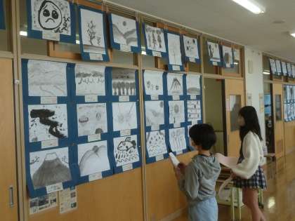 図画工作科の時間に「水墨画」の鑑賞をしました。子供たちは友達の作品を見ながら、次回の学習で生かせることはないかを真剣に考えていました。