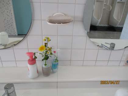 すると、今年度から担当できるようになったトイレには、校庭でつんだであろうお花が生けてありました。上学年となり、自分だけでなく、周囲の人のことを想い、できることをしていこうとする素敵な心が感じられました。