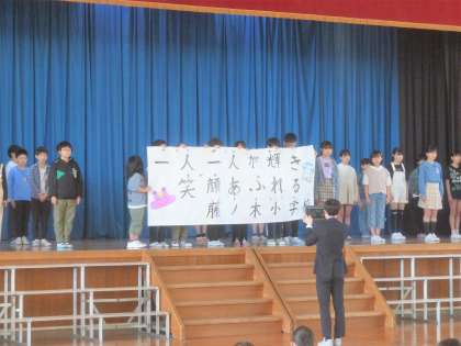 本日、白藤児童会発足式が行われ、令和5年の児童会スローガンの発表と、各委員会の委員長・副委員長の紹介がされました。委員会の目当てや意気込みを伝える委員長たちの姿はもちろん立派でしたが、何より、それを真剣に聞いている高学年みんなの姿に感心しました。これからの児童会活動が楽しみです。