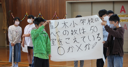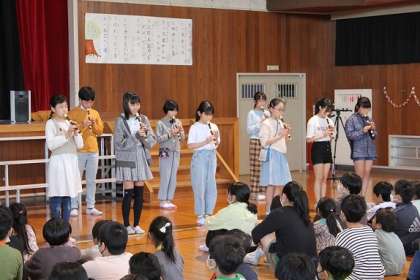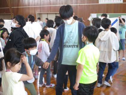 5月1日(月)に「1年生入学お祝い集会」がありました。6年生は、リコーダー演奏を行ったり、1年生とペアで○×クイズを行ったりと1年生と交流を深めました。これまで企画・運営に携わった6年生にとって1年生の笑顔がとてもうれしく、上級生らしく声をかける姿がたくさんありました。