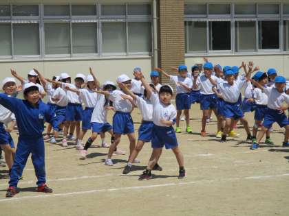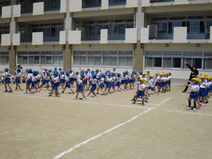 運動会のダンス練習をしました。子供たち全員が笑顔で、曲に合わせながら楽しく踊っていました。動きが揃っていて、とても素敵でした。