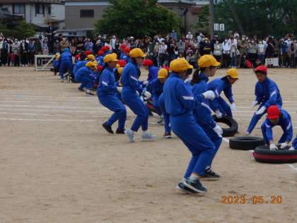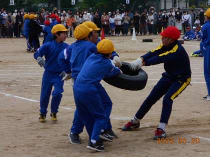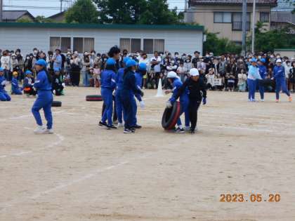 タイヤ取りでは、団で作戦を立て、全力で取り組みました。頭脳と体力を生かした6年生らしい戦いを繰り広げました。