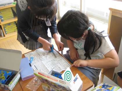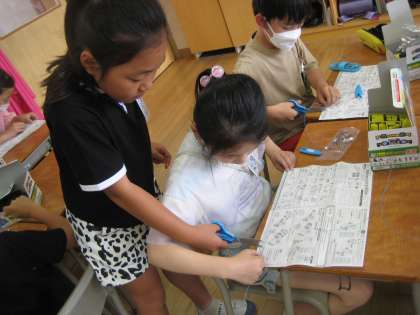 子供たちは、プロペラカーを作るために様々な部品を組み立てました。友達と協力し、助け合いながら製作しました。「ありがとう」の言葉がクラスにたくさん広がりました。