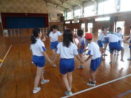宿泊学習が近づいてきました。今日は班のみんなで体を動かすレクレーションに取り組み、仲間と絆を深めました。勝っても負けても、笑顔で楽しむ子供たちの姿はすてきでした。