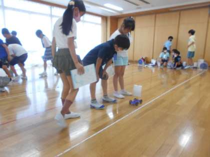 自分の測定だけでなく、友達の車の動く距離にも関心をもって調べていました。