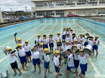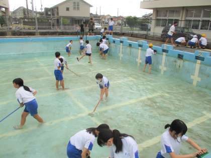 6年生はプール清掃に取り組みました。みんなで力を合わせて、プールの底や側面をブラシで磨いたり、プールサイドの草をむしったりしました。きれいになったプールで、藤っ子のみんなが学習できるようになり、最高学年としての役割をしっかりと果たすことができました。