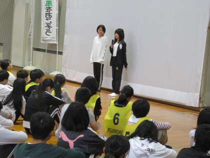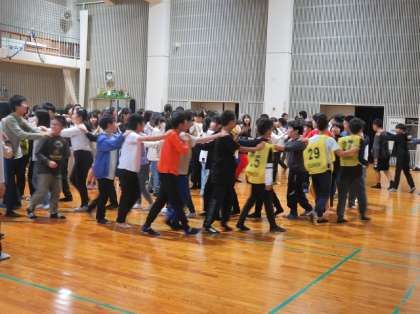 朝の集いでは、一緒に宿泊した新保小学校のみなさんとレクレーションをしたり、学校紹介をし合ったりしました。みんなで楽しく交流する姿が見られました。