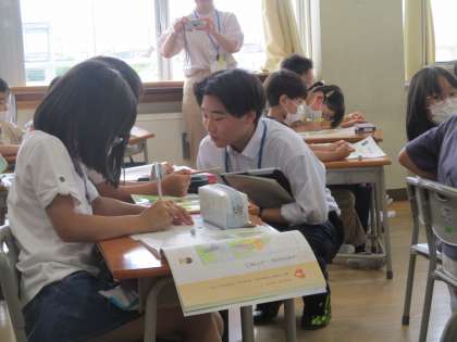 道徳の学習では、きまりを守ることの大切さについて学習しました。この時間は教育実習生による授業です。みんなよく話を聞いて、自分の思いを仲間や先生に伝えていました。