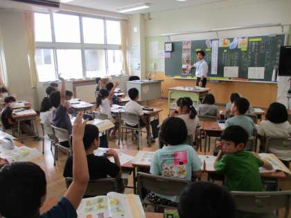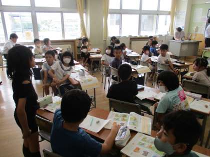 道徳の学習では、きまりを守ることの大切さについて学習しました。この時間は教育実習生による授業です。みんなよく話を聞いて、自分の思いを仲間や先生に伝えていました。