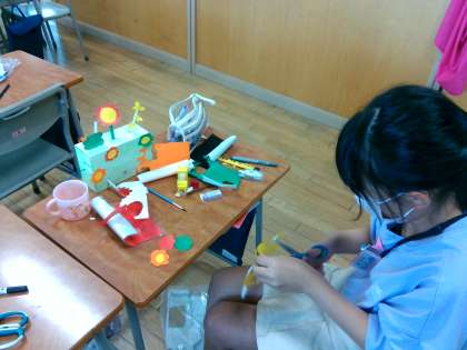 友達と考えながら、クランクの仕組みを生かした作品を作りました