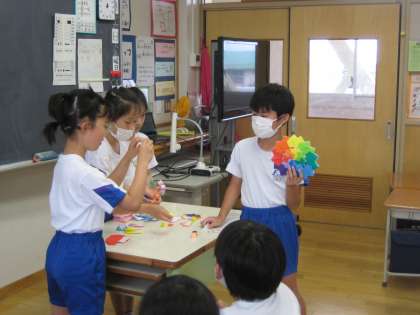 学年委員会が企画したドッジボール大会やビンゴ大会の、景品渡しがありました。クラスのみんなが喜んでくれるような景品を考えて作っていました。