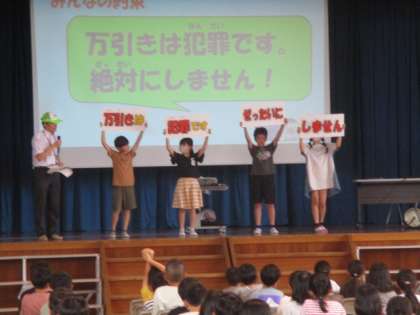 万引きを防止するための教室が開かれました。子供たちは、「なぜしてはいけないのか」というところまで考えた発言をしていました。「絶対に万引きをしない」と誓った今日の気持ちを大切にして過ごしていきましょう。