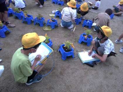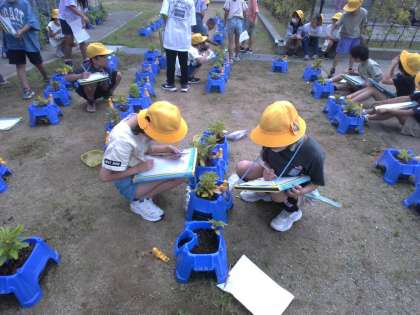 3年生は理科の学習でホウセンカを育てています。前回の観察と比べて、ホウセンカの葉の大きさや、高さがどう変わったか、観察カードに丁寧に記録しました。