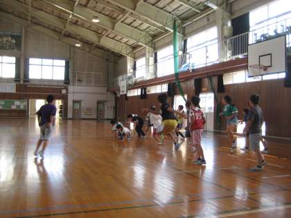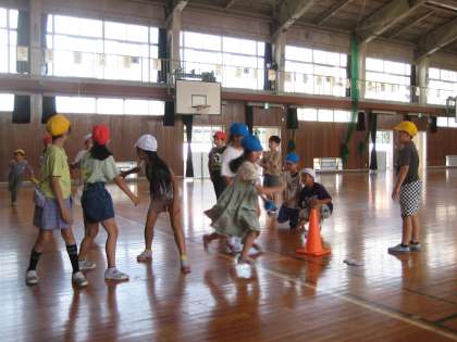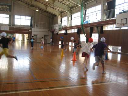 学習、健康、運動委員会が企画した活動がありました。友達と協力しなければ勝つことのできないルールを設定するなど、工夫していました。