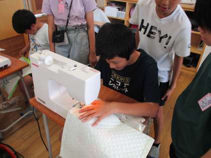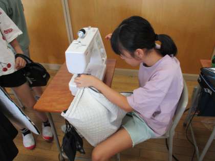 ミシンを使ってトートバッグを制作しました。長さをしっかり測り、理想の形に仕上げられるよう、真剣に取り組んでいました。