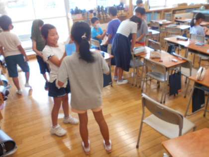 3年生のあるクラスでは、ミニゲームをしてコミュニケーションをとる場面がありました。いろいろな友達と会話を楽しんでいました。
