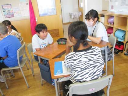 2学期最初の授業では、対話の練習として、夏休みの思い出を友達と聞き会いました。友達の話を聞いて、「楽しそうだね」「他にどんなところに行ったの」など、リアクションしたり質問したりして、楽しく対話をしていました。