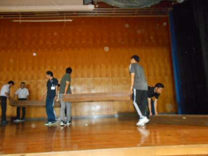 2学期も行事がたくさん予定されています。10月の学習発表会に向けて、先生たちも準備を整え始めています。今日は、ステージの設営のために、台を出してステージ配置の確認をしました。子供たちに負けずに、先生たちもがんばっています!