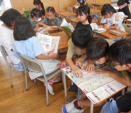 「見つけたよ!富山のじまん」の学習では、富山県の本やパンフレットを見ながら、観光地や特産物等の情報を検索しました。