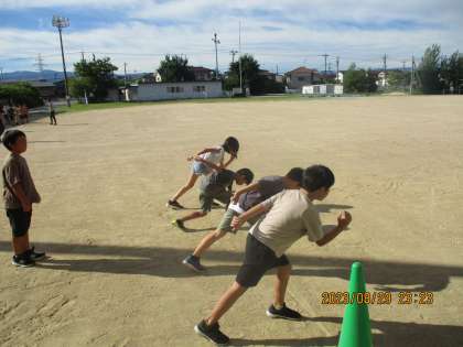 グラウンドでは、速く走れるようになりたいと願い、自分たちで練習場を設置し、何度もトレーニングをしています。多目的室では、なわとびの回数や技を増やそうと練習をしています。また、教室では、得意なイラストを生かして、漫画を描き、廊下に掲示している子もいます。それぞれのやってみたいことに寄り添い、応援していきたいと思います。