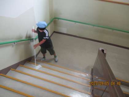 上学年になった4年生の掃除場所の多くは、下学年が使う階段やトイレ、生活科室等が担当になっています。掃除の時間を通して、下学年への思いやりの心を育みながら丁寧に取り組む子供が増えています。