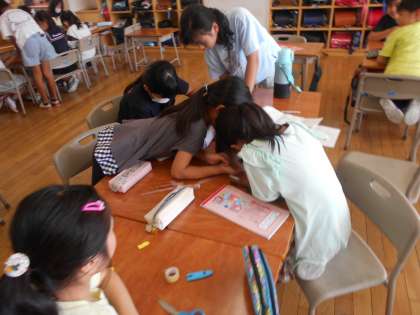 係活動のポスター作りをしています。それぞれの係がどんなことをしようかと計画を立てたり、準備を進めたりしています。これから何をするのか楽しみです。