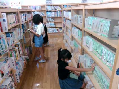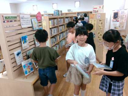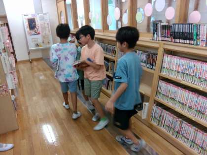 教科書に載っている本を見付けて手に取ったり、家で育てているひまわりの本を手に取ったりしていました。2学期も様々な本に出会い読書の幅を広げていってほしいです。