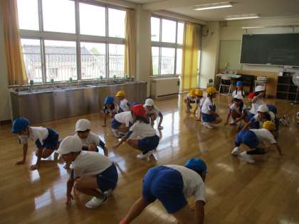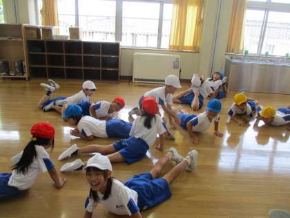 2学期の体育の学習は表現遊びからスタートしました。「跳ぶ」「這う」「回転する」など様々な動きをつかって、動物になりきります。互いの動きを見合って、すてきなところをたくさん見付けて、自分の動きに取り入れていました。