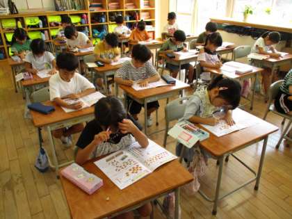 火、水、金曜日の朝活動では、カタカナ練習や計算練習等、静かに集中して取り組んでいます。
