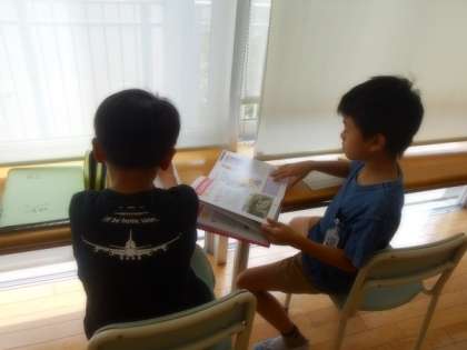 子供たちは、疑問を解決したり、知識を増やしたりするために、調べ学習をしています。友達と協力しながら学習する姿が見られました。