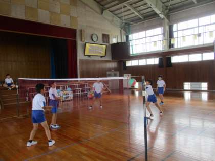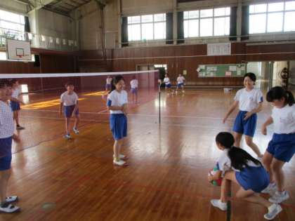「ビーチバレーボール」の学習を行いました。アタックが決まったときは、チームみんなで喜び合っていました。少しずつ上達しています。