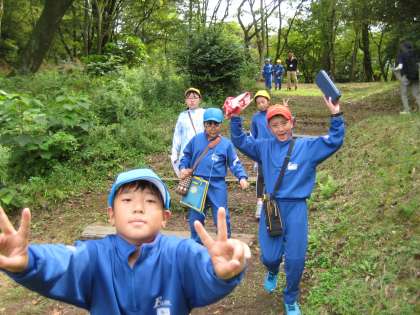 森の動物オリエンテーリングの様子です。地図を見ながら、ポイント探しをしました。