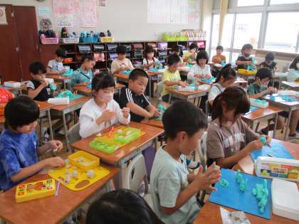 これまでの楽しかった思い出や、うれしかった出来事を粘土で形にしました。人間を粘土でつくったり、思い出の場所を再現したりして楽しみながら表現活動に取り組みました。