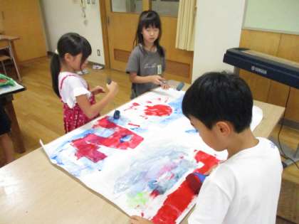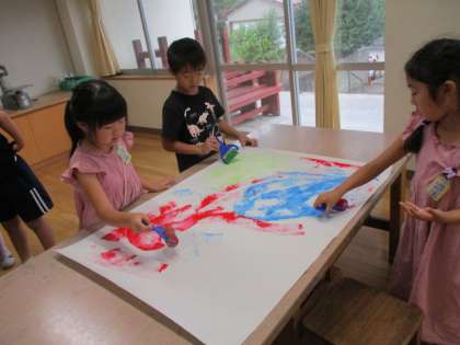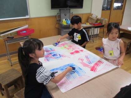 図画工作科の「ぺったんころころ」では、ローラーを使って、色々な形をうつして楽しみました。