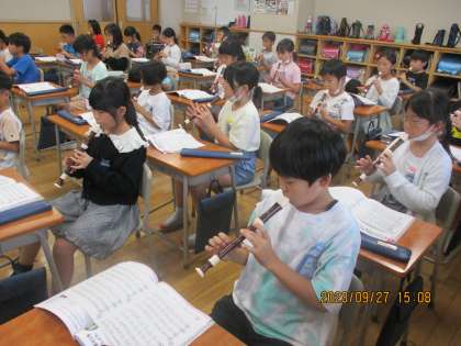 水曜6時間目は、全クラスがリコーダー練習をしています。学習発表会で披露する「エーデルワイス」の特訓です。低い音を出すのが難しいようですが、粘り強く練習しています。