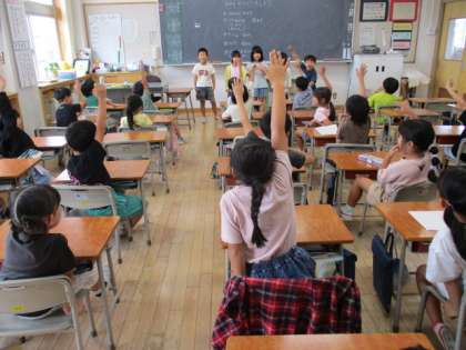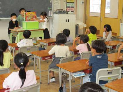 学級活動の時間にそれぞれの係が考えた出し物(クイズ、読み聞かせ、フルーツバスケット)をして楽しみました。