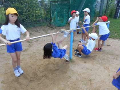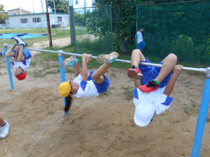 体育科の学習では、鉄棒をしました。今日は、ぶらさがり技であるふとんほし、こうもり、ぶたのまるやき、ちきゅうまわりを中心に頑張りました。どんどん技に挑戦する姿がかっこよかったです。