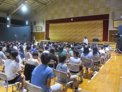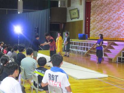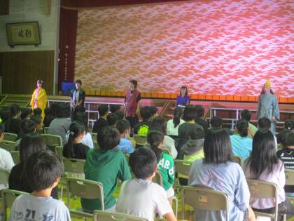 あくろばっと☆カンパニー飛天による「忍者サスケ」を鑑賞しました。この劇には、「困難なことがあっても仲間と協力すれば乗り越えることができる」というメッセージが込められていました。子供たちは、忍者が修行で行う側転やバク転に歓声をあげたり、忍者たちの面白いやりとりに笑ったりしながら楽しく鑑賞しました。きっと心が温かくなったことでしょう。