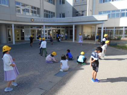 今日は、日かげと日なたの地面の温度はどのように違うかを調べました。触ってみると、日なたの地面が温かいことに気付きました。