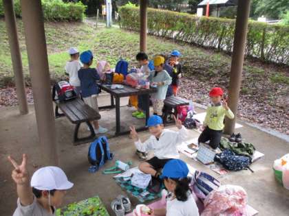 お弁当の後は、楽しみにしていたおやつをうれしそうに食べていました。