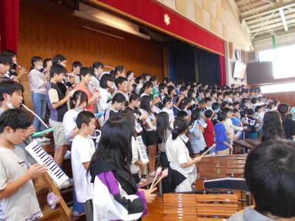 パート毎に協力して進めてきた歌や合奏を合わせたり、並びを確認したりしました。