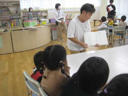 検査会場まで手を繋いで案内したり、検査が終わった年長さんに読み聞かせをしたりしました。
