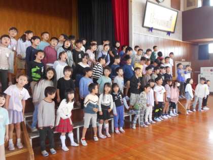 体育館練習の回数を重ねるうちに、大きな声で自信をもって台詞を言えるようになってきています。歌もきれいな声で歌えるようにがんばっています。今週は振り付けをつけて、これまで以上にくじらぐもの世界を表現できるように練習しました。