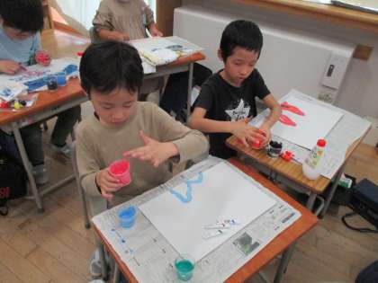 とろとろ絵の具で描こう(2年生)